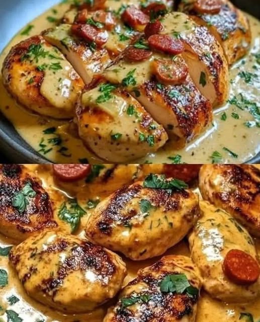 This Chicken with Creamy Garlic Sauce is a simple yet elegant dish that’s bursting with flavor. Juicy chicken breasts are seared to perfection and smothered in a rich, velvety garlic sauce that’s packed with savory goodness. It’s quick enough for a weeknight dinner but sophisticated enough for special occasions. Serve it over pasta, rice, or mashed potatoes for a comforting meal that will leave everyone asking for seconds. Let’s get cooking!