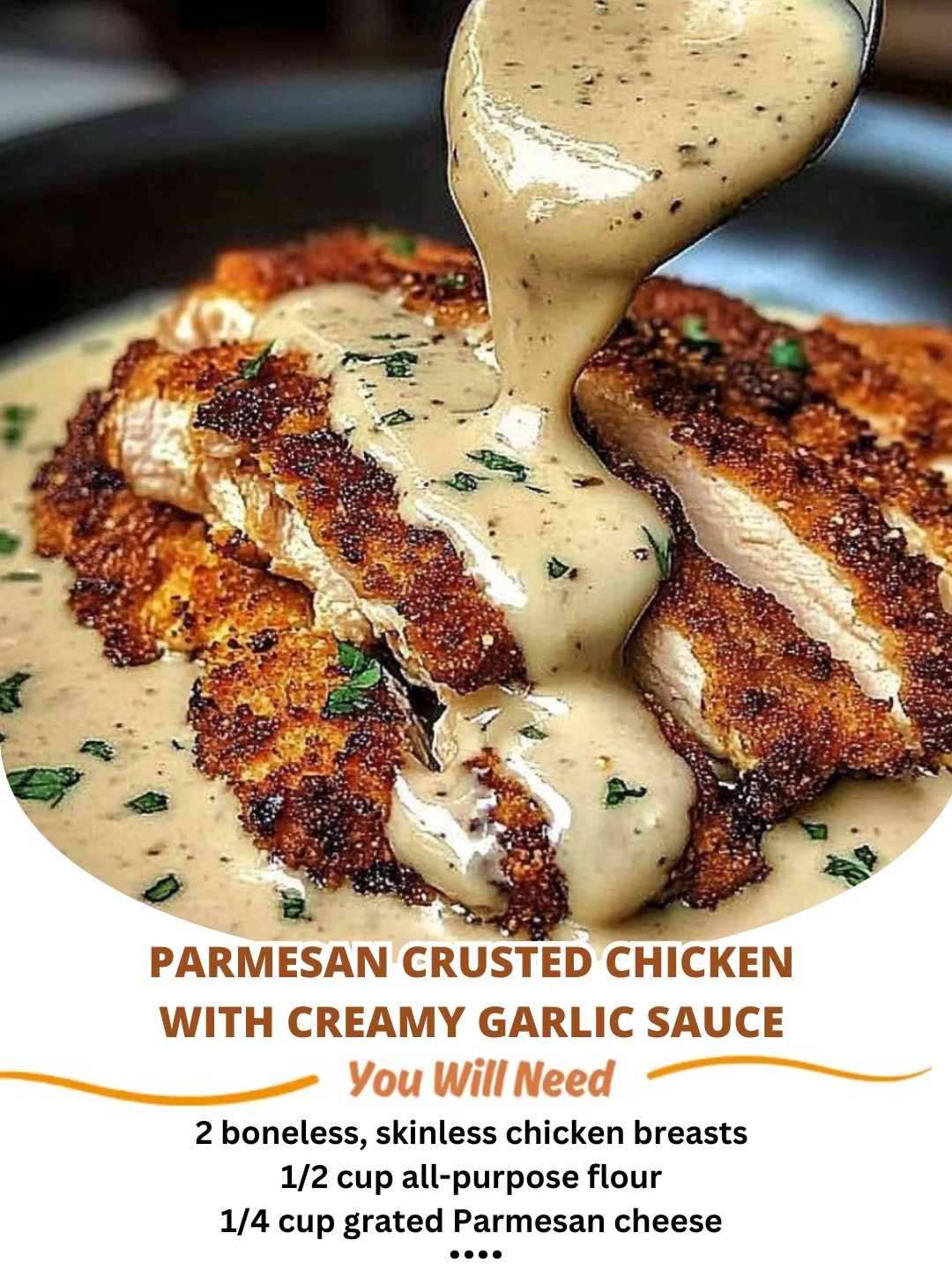 Parmesan Crusted Chicken with Creamy Garlic Sauce